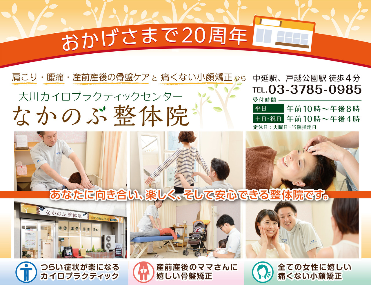 なかのぶ整体院は東京、神奈川、千葉に30を超える院を運営する大川カイロプラクテック専門学院のグループ院です。