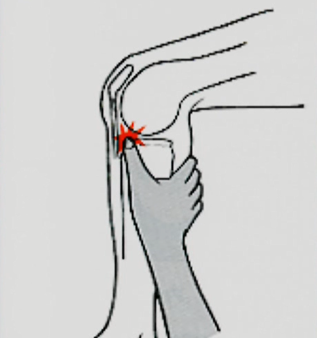 いわゆる膝に水が溜まるという症状の事で全膝関節症の症例の約30%と言われていて運動後に起こることが多いです。